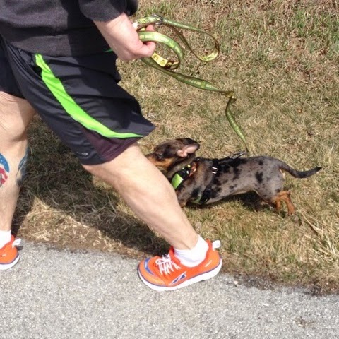 After I got back, Mandy and the boys were ready to go for a walk and I thought it would be a good way to stretch out the post run legs. Mandy is registered for the 5K that is going on at the Glass City Marathon to give her something to do while I am running the Owens Corning Half Marathon so she needs to get a little training in as well. We headed out on the bike path at a brisk walking pace with a few spurts of light jogging. Jedi is starting to get better at walking on the leash and is loving to pick up the pace and get a full run on.